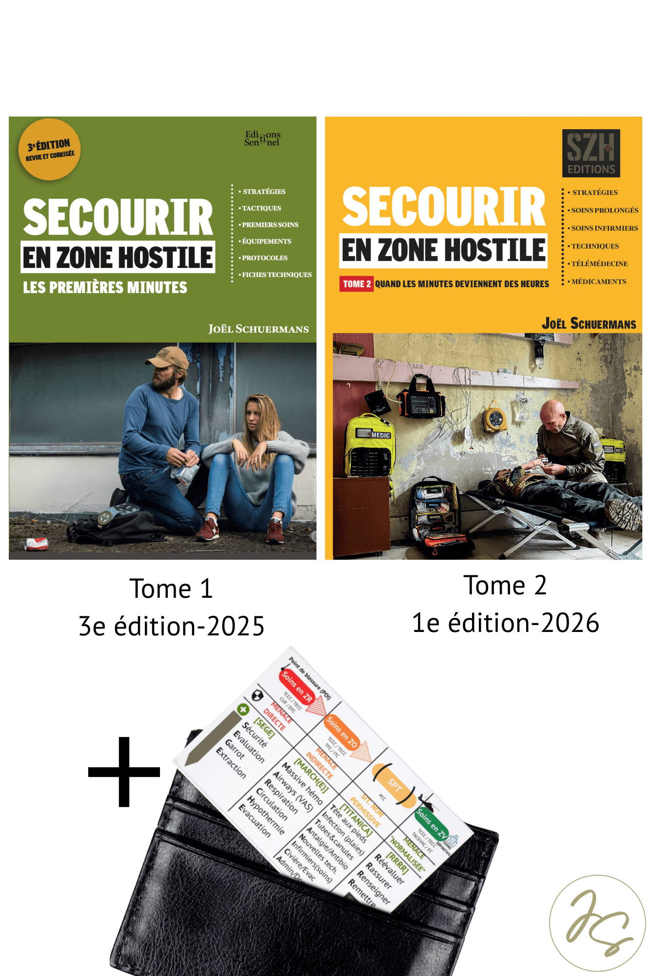 Le contenu de ce pack des 2 livres SZH + 1 aide-mémoire PVC en cadeau vous permettra d’acquérir plus de 740 pages de savoir pour couvrir tout le spectre de la prise en charge de blessé en contexte non permissif depuis le point de blessure jusqu’à l’évacuation (très) retardée..